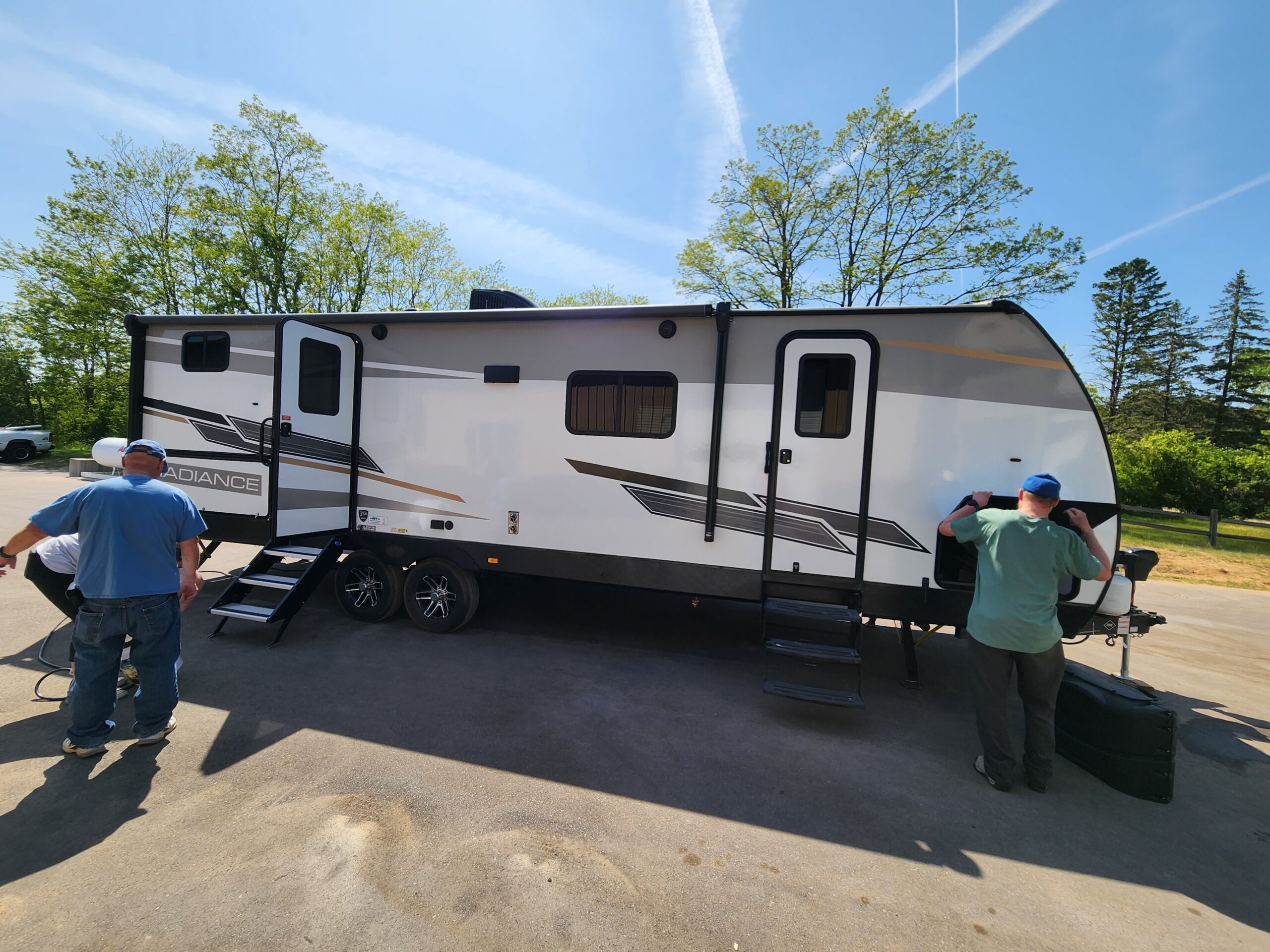 Went shopping for a camper. Found one we liked and purchased the camper. Randy and Ann helped with transporting the camper (Twice), to a temporary home and it’s final home (see later post). Click image below to enlarge.