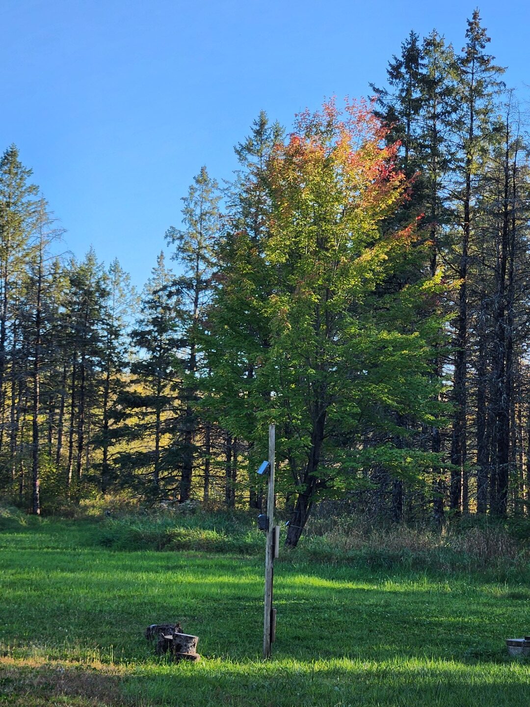 Great Weekend. Many tasks and small projects completed. Yard work, planting, target practicing, and more. Took a walk down to the field as the sun was going down. Lots of deer in the field. Took a walk to the ponds in the morning. Several ducks were visiting the pond.