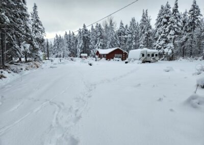 Janet, mom, and I made a day trip to view Crabby Acres in the winter after receiving a large amount of snow. It was hard getting very far. Got a little into the yard and were able to get to the old cabin to check it out. Beautiful with the snow. A little deceiving as the snow covered the trash. The previous tenant’s camper is still parked on the property. Contacted the appropriate individuals, completed the appropriate processes, and technically (legally) at this time the camper has been abandoned. Arrangements are being made for the camper to be removed for the property.